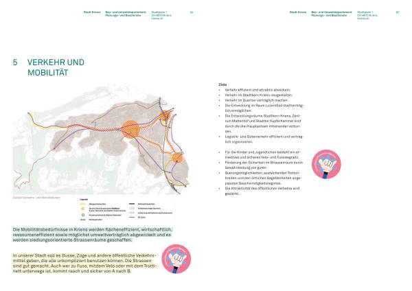 Im Räumlichen Entwicklungskonzept (REK) sind die Inputs der Kinder- und Jugendpartizipation als integraler Bestandteil in Form von Leitsätzen enthalten. Diese Leitsätze werden im REK abgebildet und den in den Handlungsfeldern «Siedlung und Städtebau», «Freiraum und Landschaft» sowie «Verkehr und Mobilität» bearbeiteten Entwicklungskonzepten vorangestellt und inhaltlich zugrundegelegt.